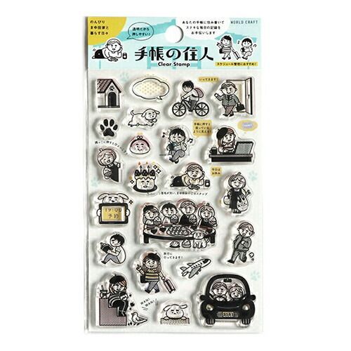 "手帳の住人が素敵な毎日の記録をお手伝い。角や線に沿って押せることで魅せる、クリアスタンプならではの柄を揃えました。""まゆげ""がチャームポイントのまゆ田家といっしょに、のんびり暮らす日々を過ごしませんか?【検索ハッシュタグ】#ワールドクラフト#クリアスタンプ#スタンプ#判子#まゆ田家#家族"
