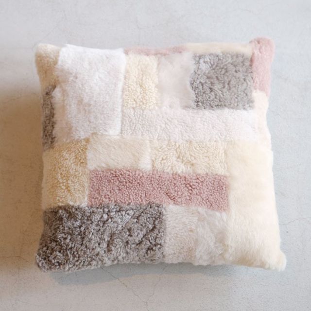 STAMPANDDIARYがOwenBarryに別注したリビングに彩りを与えてくれるパッチワーク・デザインのファークッション。ファーの切れ端をランダムにパッチワークにした1点ものアイテム。ふわふわな触り心地の冬のインテリアに最適なアイテム。