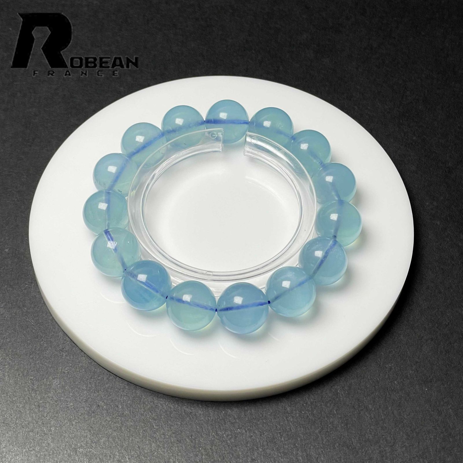 EU製 定価35万円 ROBEAN ブルーアクアマリン パワーストーン ブレスレット 天然石 原石 お守り プレゼント 14.3-14.8 mm