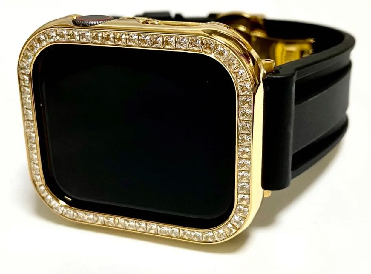 ゴールド×ブラックAppleWatchキラキラカバーアップルウォッチラバーバンド