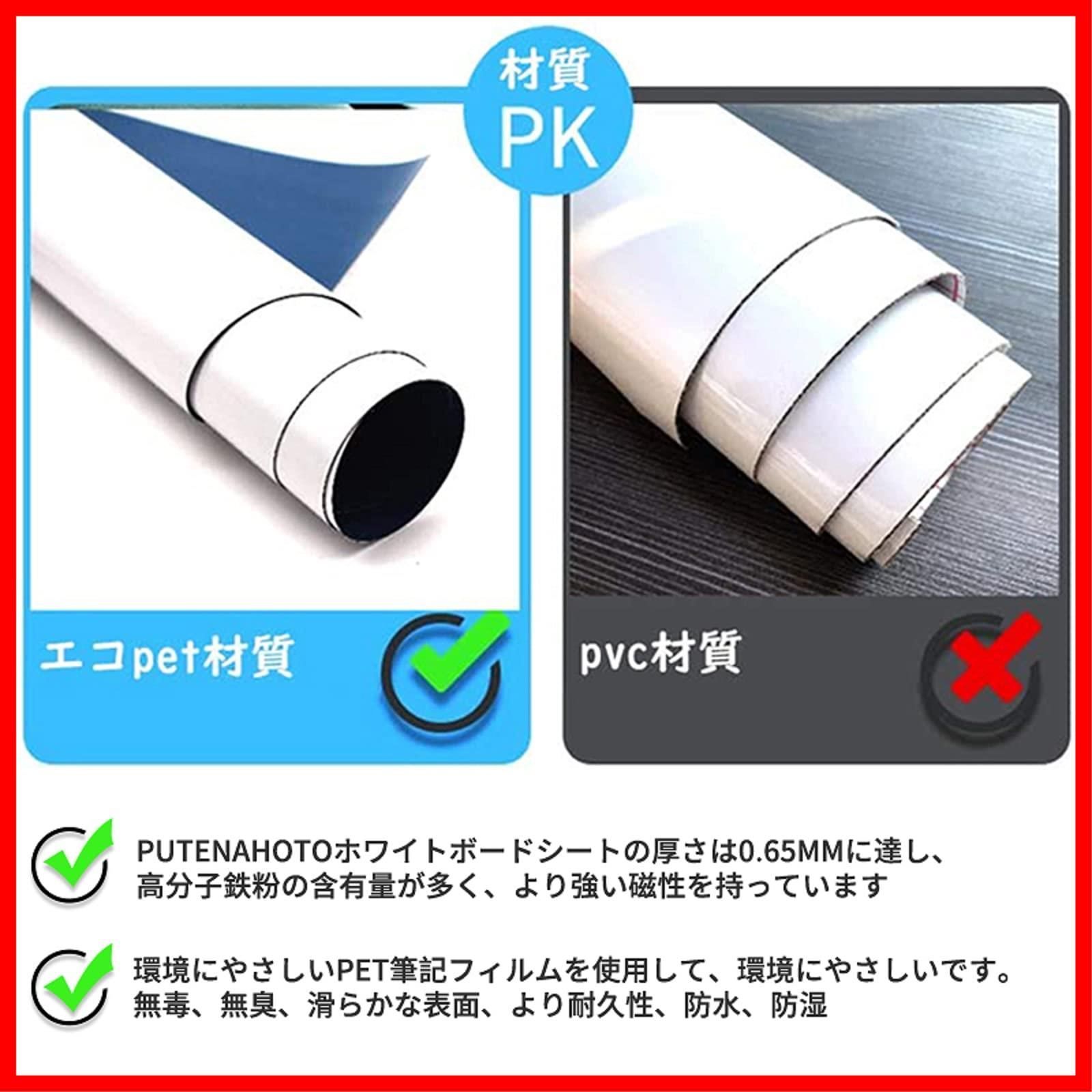 【磁気吸着力は約A4紙5枚です】Putenahoto ホワイトボードシートの厚さは0.65mmに達して、高分子鉄粉を豊富に含んでいて、磁性が強くて、磁性が弱まることがありません。 注意: 磁気と書く機能を守るため、ご使用前に、保護フィルムをがしてください。