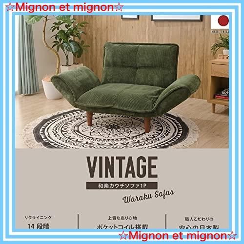 セルタン(Cellutane) 日本製 カウチソファー 和楽の極 1人掛け ポケットコイル モスグリーン 背部肘部14段階リクライニング 高反発 A282p-14段-683GRN