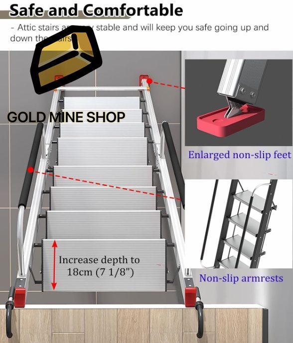 ロフト はしご 階段 屋根裏 滑り止め手すり付き折りたたみ式ロフトはしご アルミ屋根裏はしごロフト階段 省スペース地下室 窓井戸脱出はしご シルバー 9 step 275 cm 108 3