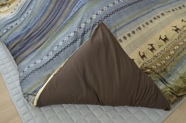 ギャベ柄をモチーフにした大人かわいいこたつ布団用のカバーです。繊細なプリントが特徴です。表地には肌触りのよい短毛のマイクロファイバーを使用しています。ファスナー付きなので着脱も簡単です。洗濯機で洗えるので清潔にご使用できます。