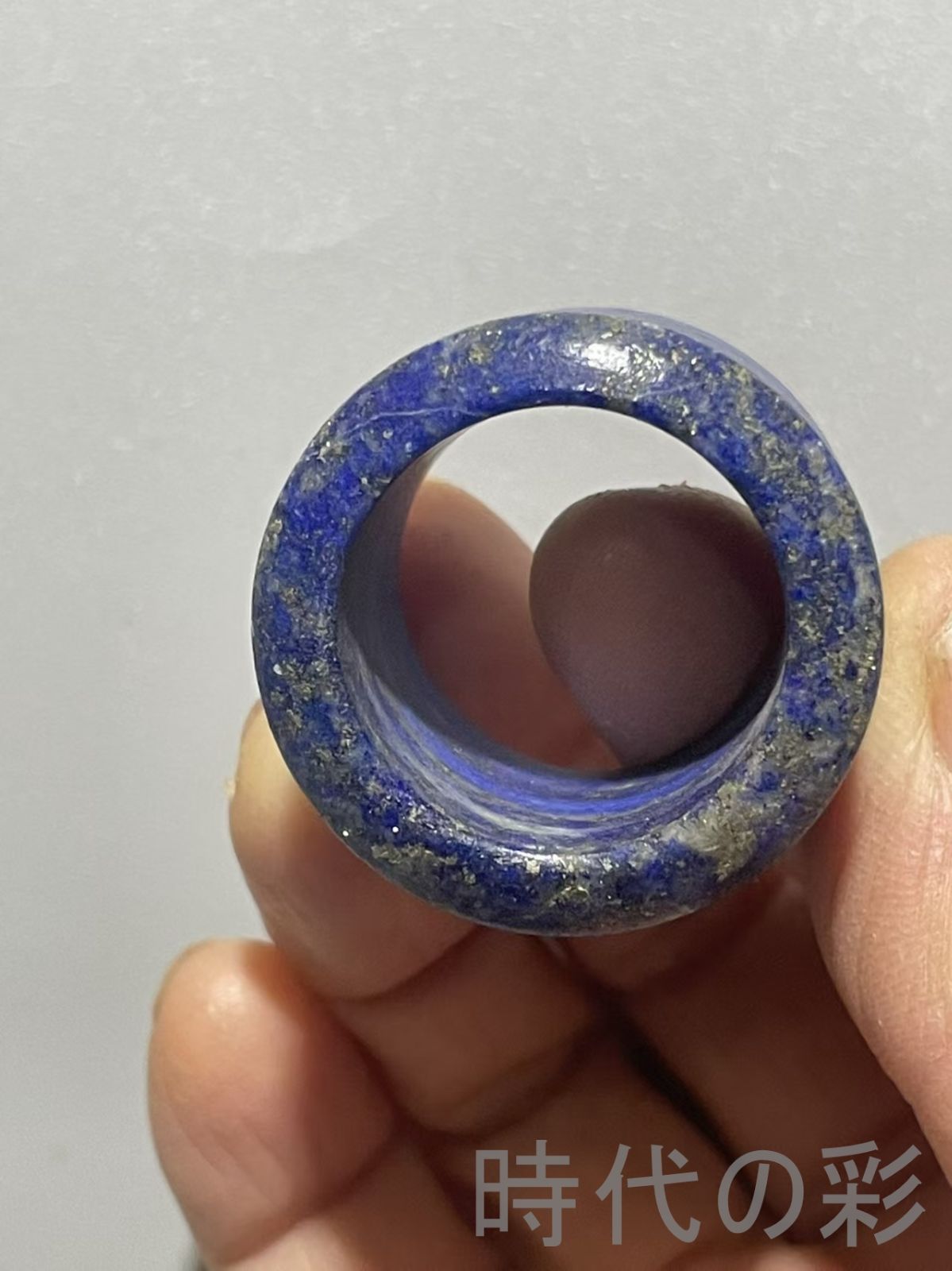 清代の青金石による?指です。鮮やかな藍色と天然石の斑点が魅力的で、佩戴にも適した古美術品です。