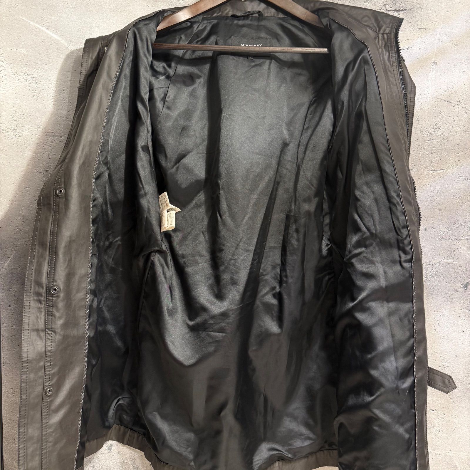 上品ロング BLACK LABEL バーバリーブラックレーベル ロングコート Lサイズ フード付 レザージャケット風 アウター メンズ 着丈84 ダークブラウン系
