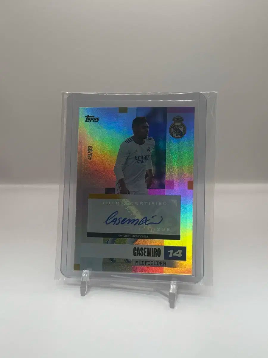 これはレアル・マドリードのカゼミーロ選手のサイン入りカードです。Toppsがプロデュースしたもので、99枚の限定版の49枚目のカードです。カードにはホログラムが入っているので、実生活ではさらに美しくなります。別途以上質問はありませんので、すぐに安全な支払いを行ってください!