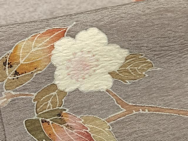平和屋着物●京加賀友禅 百貫達雄 色無地 枝花文 隠し柄 胡桃染色 扱い 正絹 zg