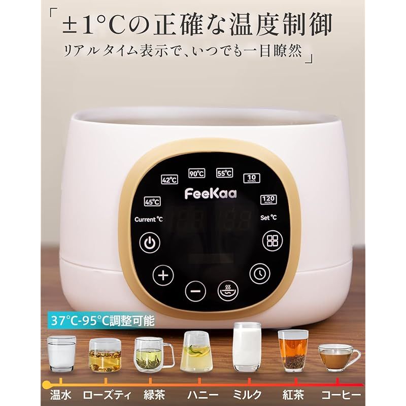 精確な温度制御:ワンタッチで100℃まで沸かせるボタンと、37~95℃までは温度設定ボタンで1℃単位での温度調整が可能です。飲み物に合わせた温度で沸かせば、より美味しい飲み物が楽しめます。調乳ボットは牛乳、水などを精確に目標温度で保ち、最大72時間保温できます。過熱または過冷をを防ぎ、あらゆる赤ちゃんのお好みに合わせます。夜中でお腹が空いた赤ちゃんにも最適です。