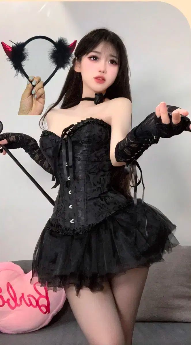 ハロウィーンにぴったりなブラック悪魔コスチュームフルセットです