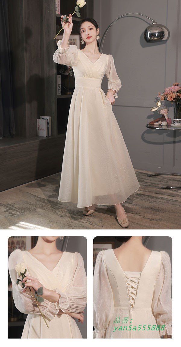 ブライズメイド ドレス 大人 ピアノ 発表会 ロングドレス 小さいサイズ 結婚式 ロング 袖付き 演奏会 大きいサイズ 半袖 披露宴 ミモレ丈 yan 5 a 555888