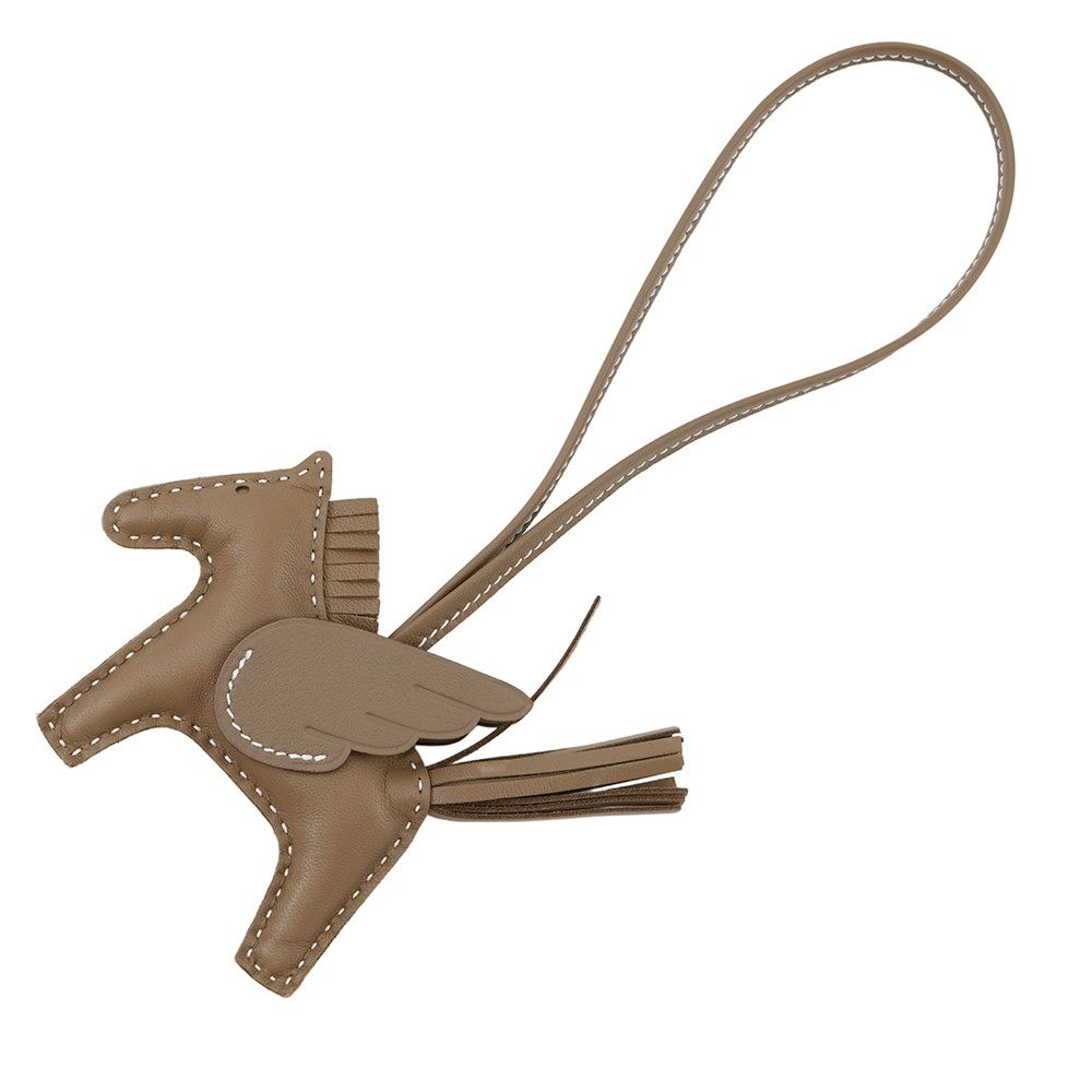 エルメス バッグチャーム ロデオPM ペガサス エトゥープ ラムスキン W刻印