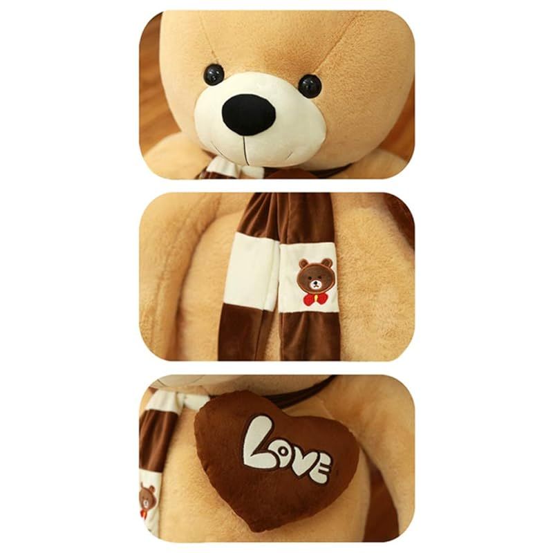 AMIRA TOYS ぬいぐるみ 大きい くま テディベア クマ teddy bear マフラー付き 熊 縫い包み 動物 抱き枕 くまのぬいぐるみお祝い ふわふわ ライトブラウン 140 cm 0