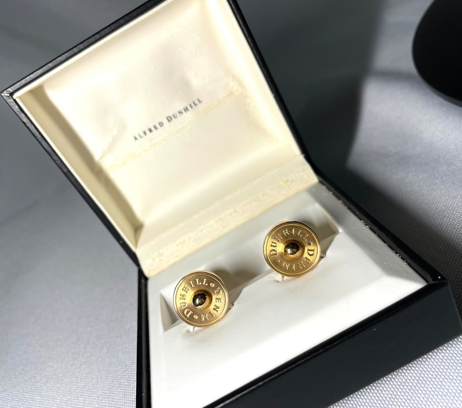 dunhill ダンヒル ブランドロゴ文字 艶消しゴールド オーバルカフス カフリンクス ボタン 付属あり プレゼントやギフトにも