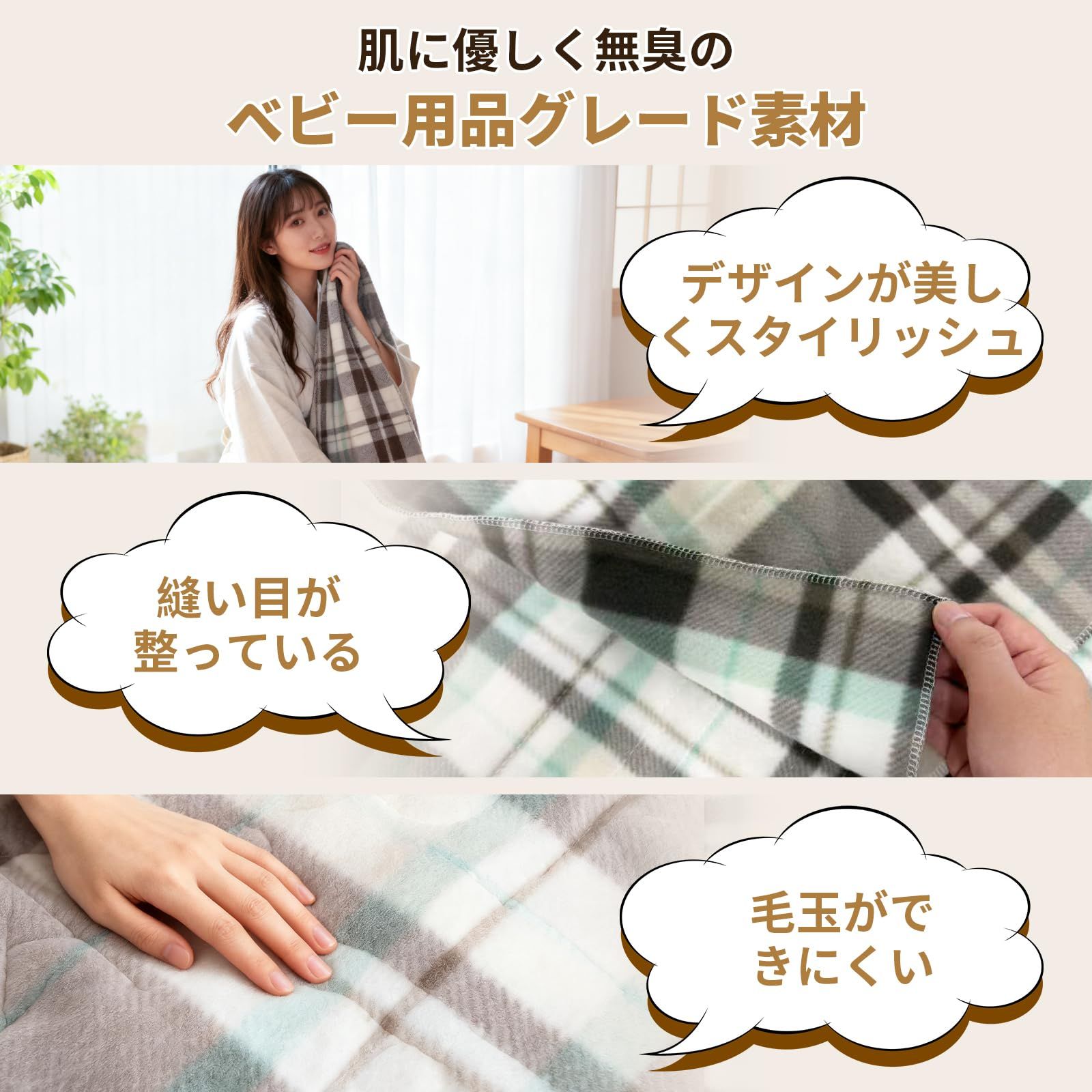 【優れた保温性・良い柔らかな生地】電気毛布 掛けは両面チェック柄の生地で、ふわふわと柔らかく、熱を閉じ込め、触り心地が快適です。細かいキルティング加工により保温繊維がしっかり固定され、偏ることなく、局所的な冷えを防ぎます。生地は肌触りが良いだけでなく、毛玉ができにくく、乾きが早く、品質が良く変形しにくい特徴があります。冬場に使用すれば、冷えた布団や体を素早く温め、長時間待つ必要がありません。夜寝入ってもずっと温かさが持続し、一晩中快適に眠れます。