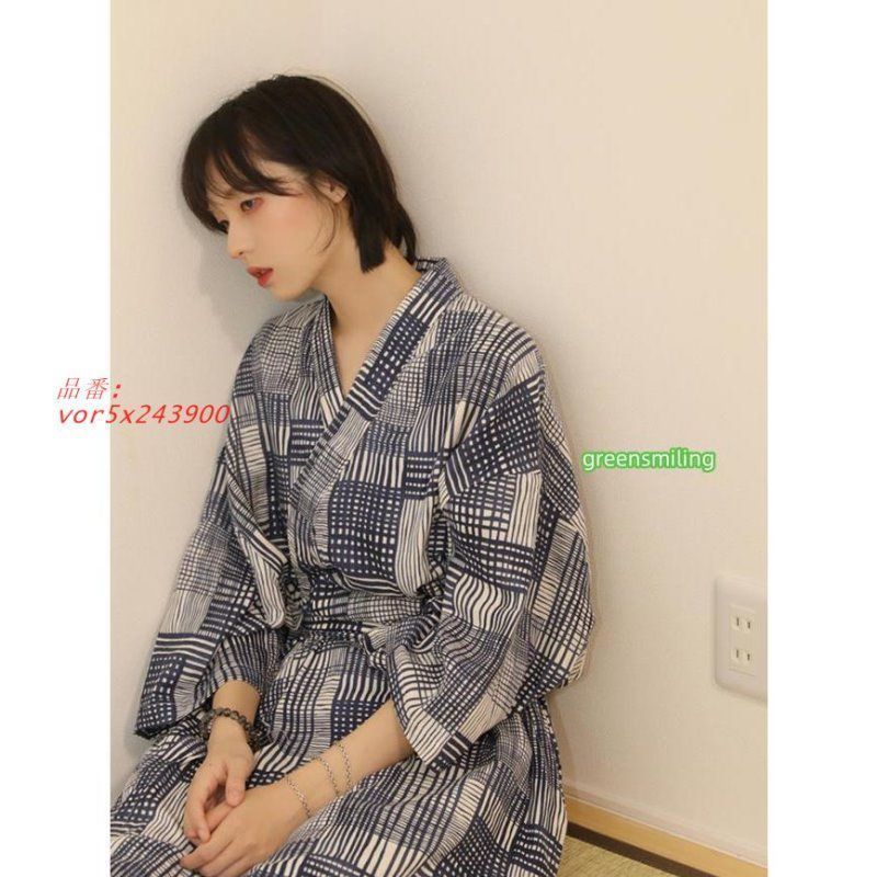 綿 ルームウェア パジャマ 寝巻き浴衣 ガウン お風呂上がり バスローブ 前開き ネイビー レディース vor 5 x 243900