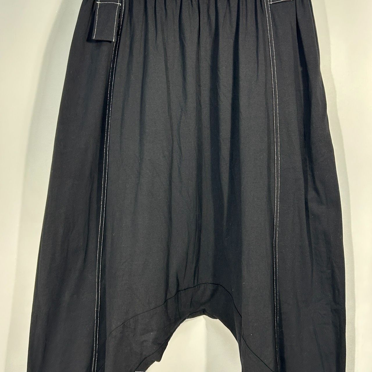 「萌 MOYURU」のアートミックスな世界観が詰まったサルエルパンツです。ブラックの生地に映える白いステッチが特徴的で、ブランドらしい大胆かつユニークなカッティングが目を引きます。非常にゆったりとしたルーズなシルエットで、体型を問わずリラックスして着用いただけます。サイズは40です。個性的なファッションをお楽しみいただけます。
