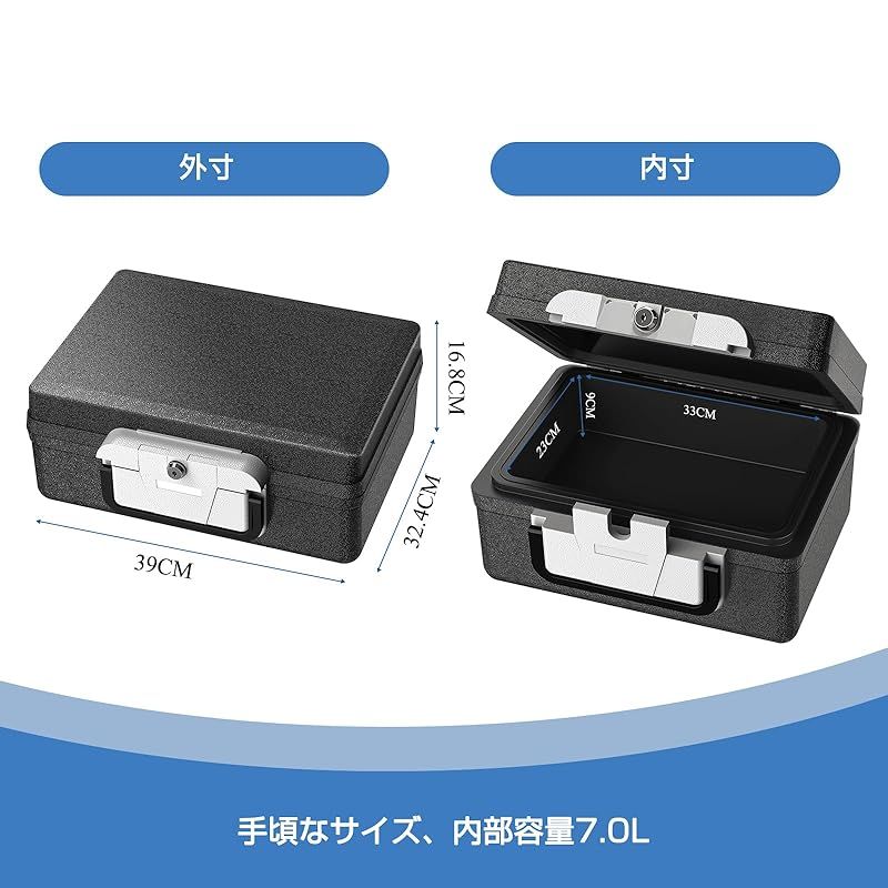 商品名:WASJOYE 手提げ金庫 耐水耐火金庫 ETL規格 鍵付き A4用紙対応 地震火災対策 ポータブル保管庫 コンパクト持ち運び便利 会計 オフィス用 家庭用手提げセキュリティーボックス 日本語取扱説明書付き 7.0L 外寸W39×D32.4×H16.8CM