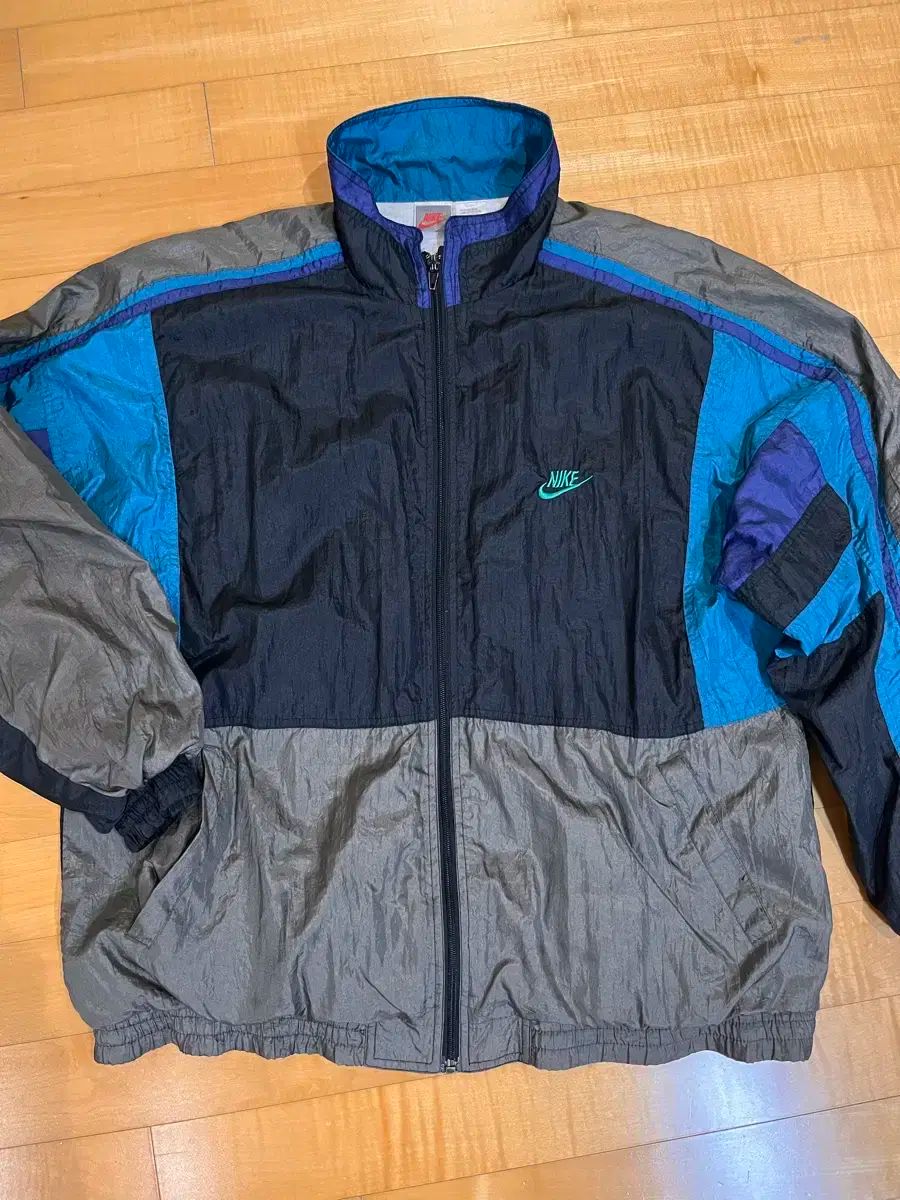 これはナイキのビンテージウィンドブレーカージャンパーです。この製品は、そのユニークな色の組み合わせで際立っています。かなり古いですが、破れもなく状態は良いです。裏地はコットン製なので、着心地もいいです