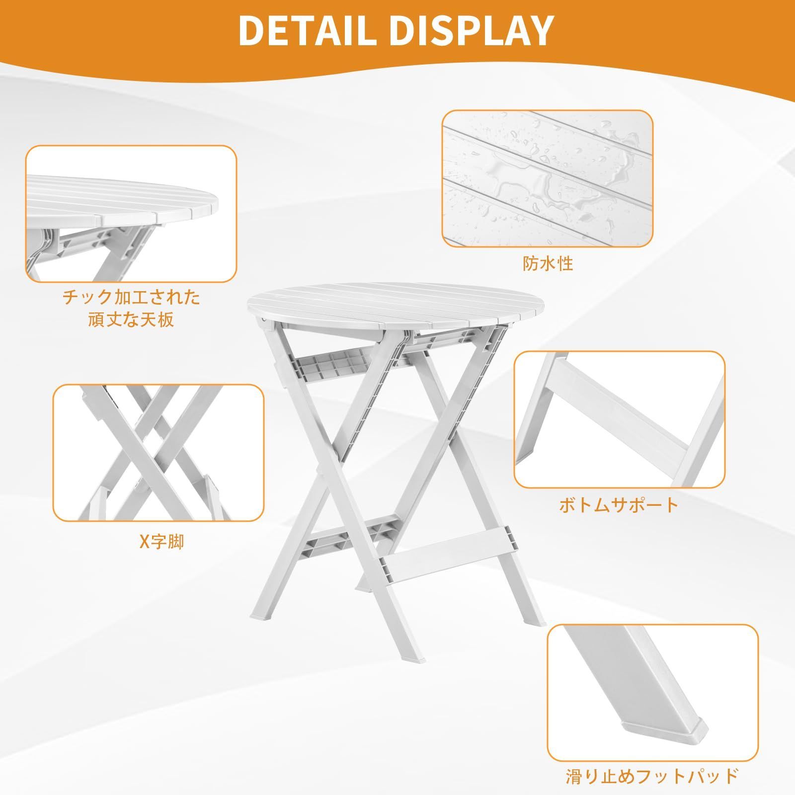 BOOSDEN ガーデンテーブル 3点セット アウトドア 折りたたみ 椅子テーブルセット ベランダ バルコニー 椅子セット 室内/屋外 庭 イベント 白色