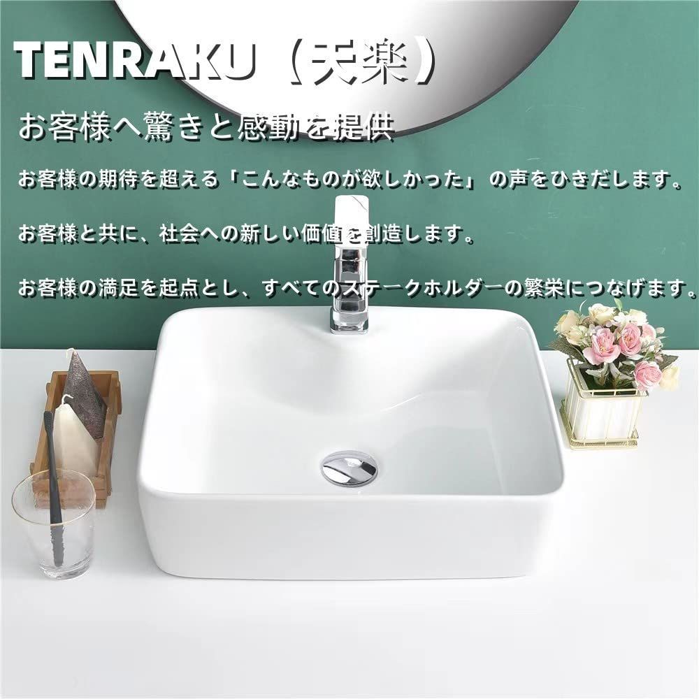 排水セット付き Tenraku 洗面ボウル 陶器製 洗面ボール 手洗い鉢 洗面台 410 300 mm 置き型手洗器 高温焼成 洗面器 陶器 室内 室外 洗面ボウル排水管セット